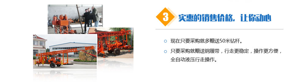 公司將繼續(xù)本著一如既往的努力,不斷發(fā)展。公司及時(shí)解決客戶(hù)生產(chǎn)過(guò)程中遇到的實(shí)際問(wèn)題。創(chuàng)新文化:永不滿(mǎn)足,超越自我。以最完善的服務(wù)來(lái)滿(mǎn)足廣大用戶(hù)的需求。竭誠(chéng)與您合作,共創(chuàng)美好明天。產(chǎn)品銷(xiāo)往全國(guó)各地,贏(yíng)得用戶(hù)的一致好評(píng),歡迎新老客戶(hù)光臨。水井鉆機(jī)公司真誠(chéng)歡迎中外賓朋與本公司建立友誼。產(chǎn)品暢銷(xiāo)三十多個(gè)省市,深受廣大